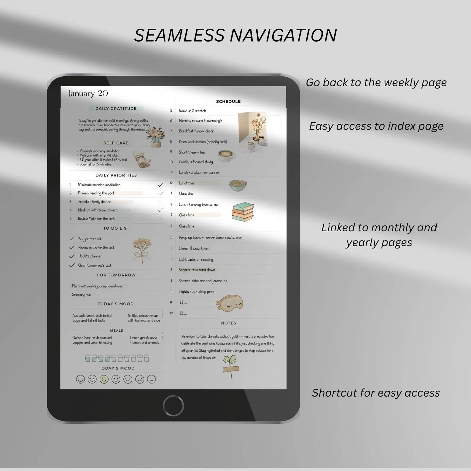 Made from high-quality digital PDF files, this GoodNotes-compatible planner features a sleek minimal design that is easy to navigate and visually appealing, helping you keep your academic goals front and center.