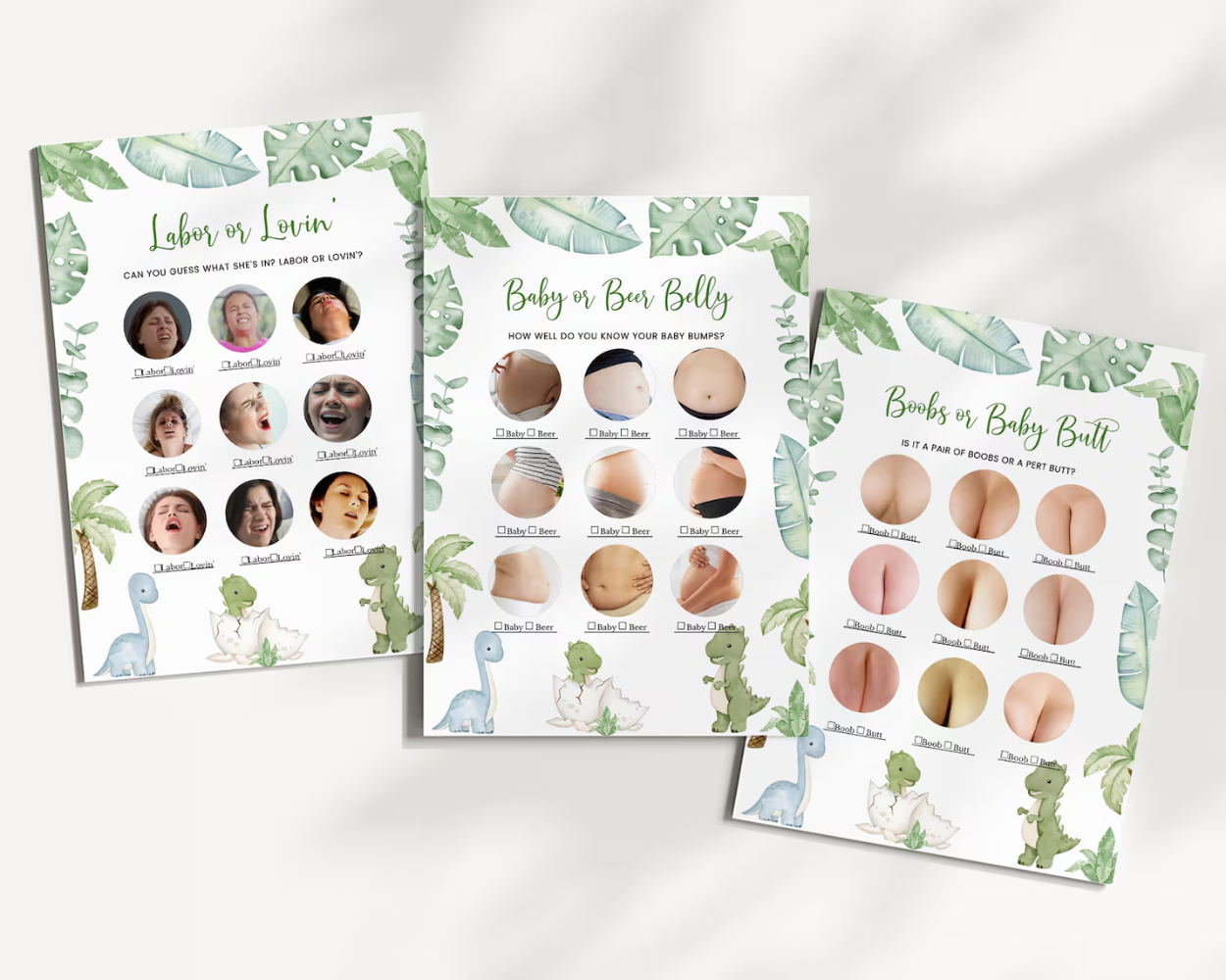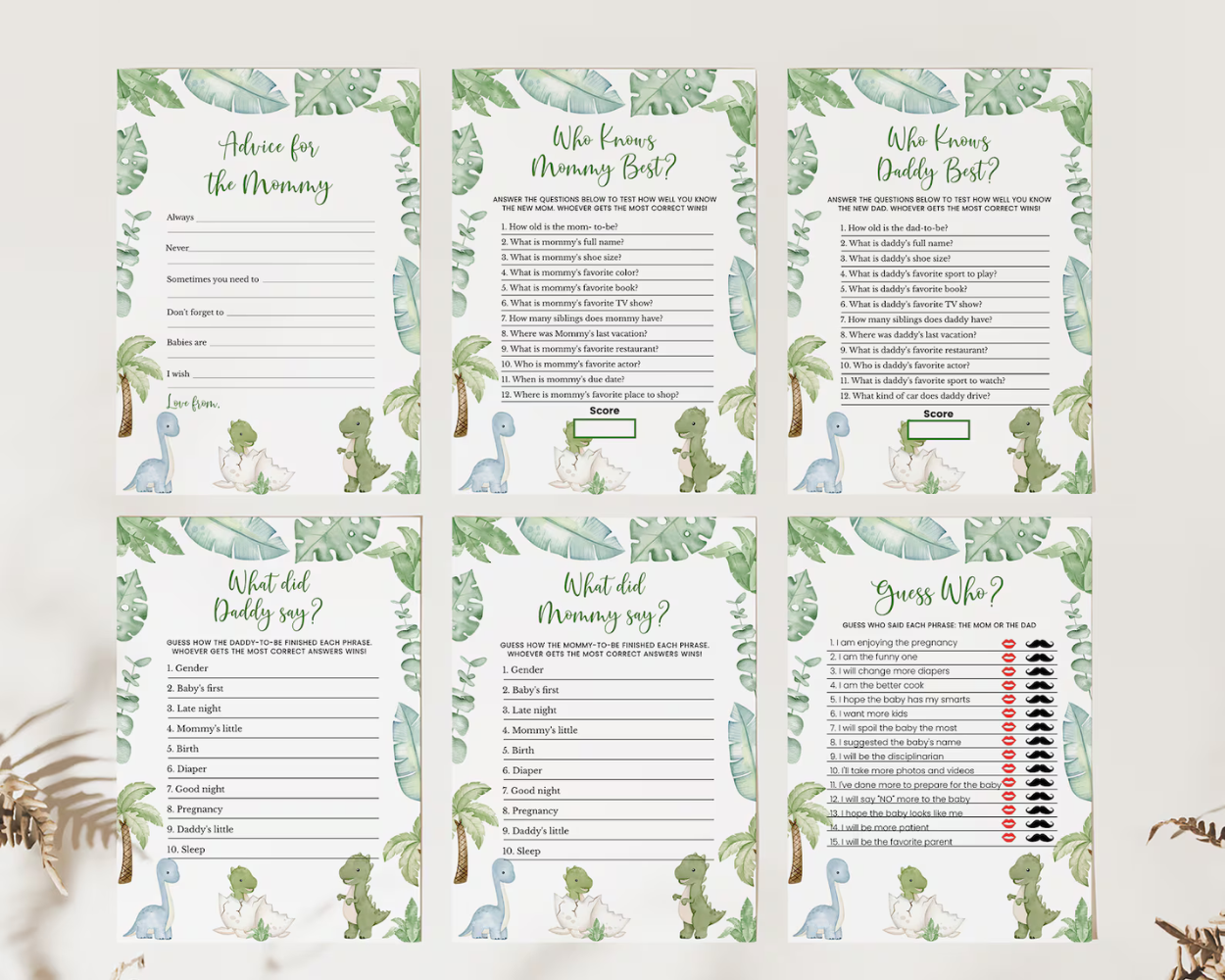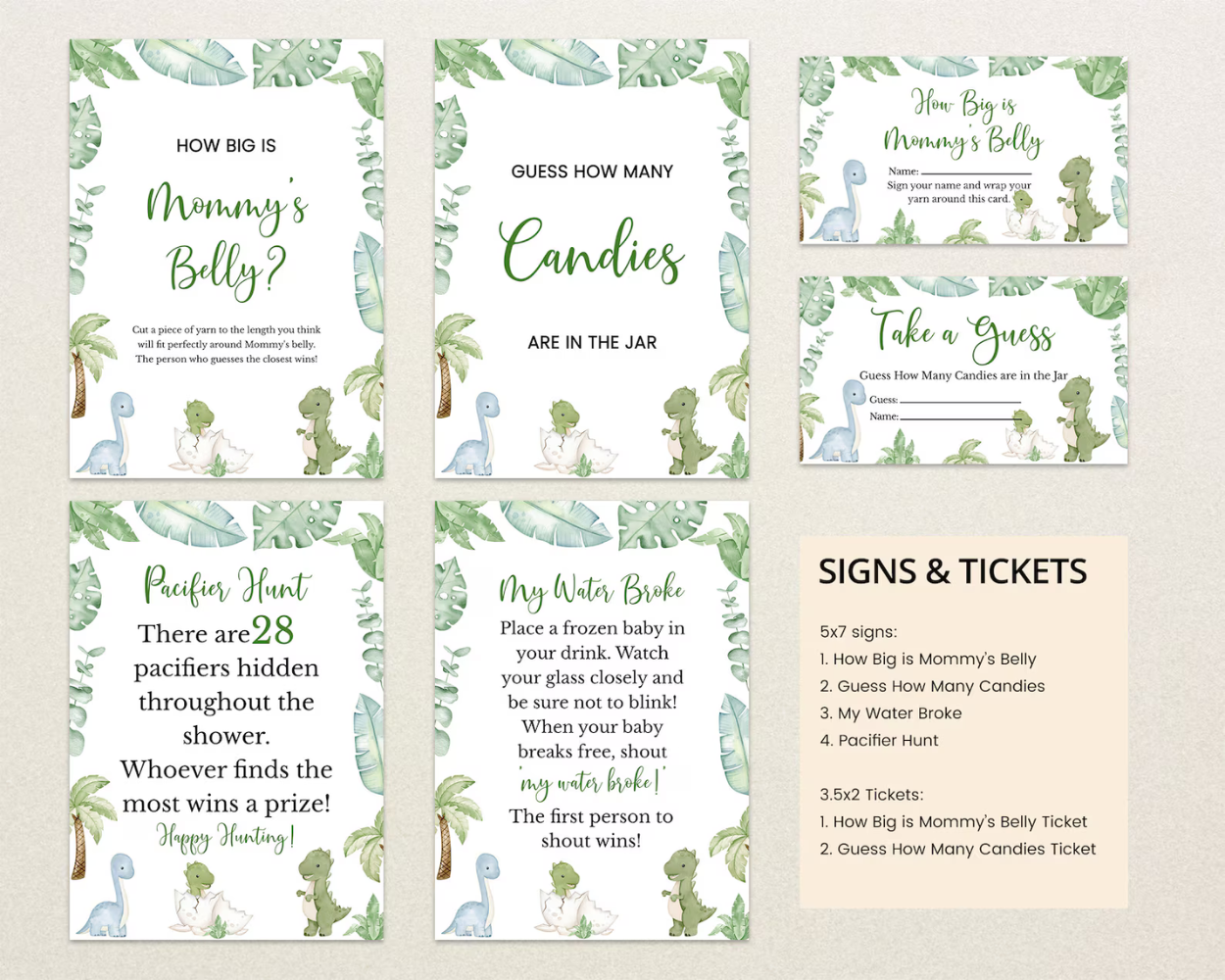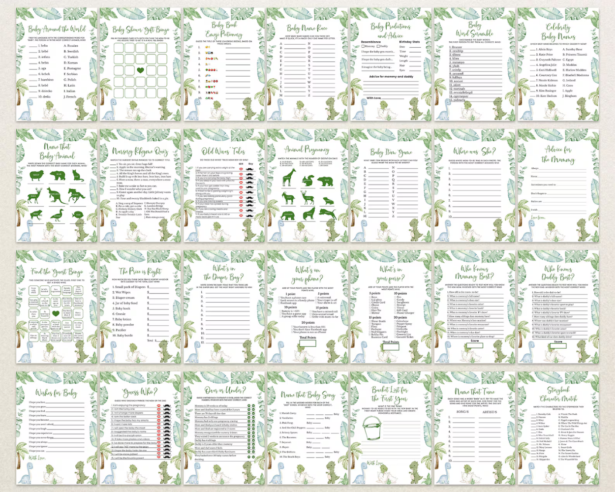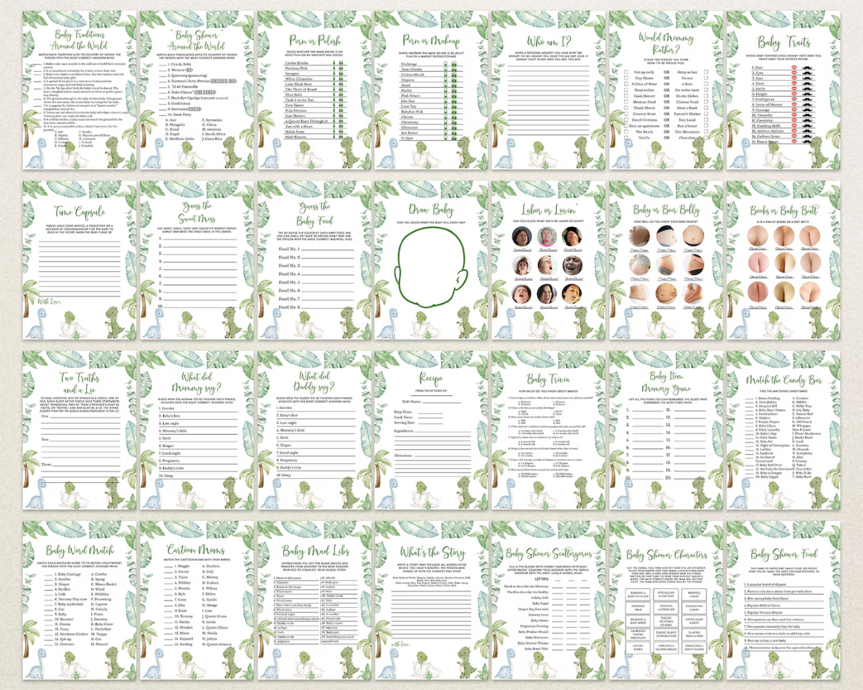 Editable Dinosaur Baby Shower Game Bundle | Printable Dinosaur Party Games